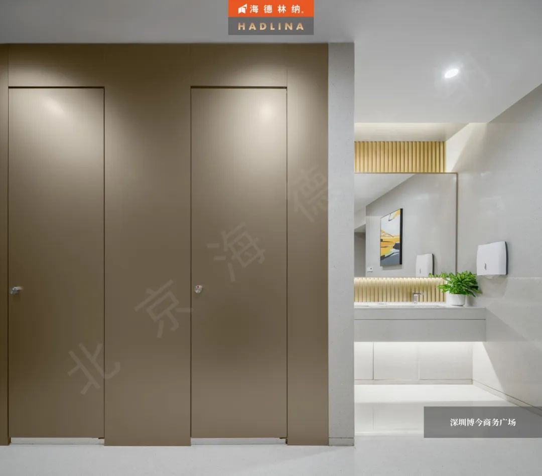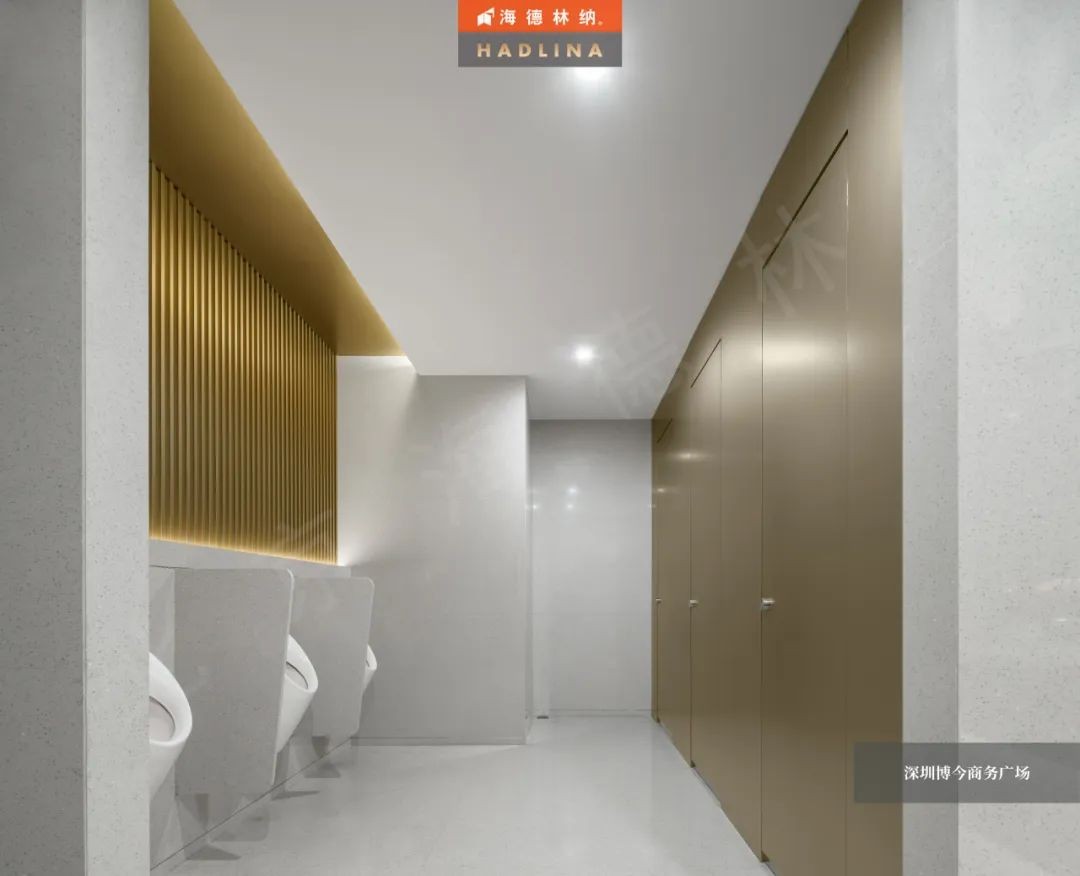 海德林納?為深圳博今商務廣場設計的衛生間隔斷系統,在材料特性、顏色選擇以及與使用空間的完美結合方面脫穎而出。不僅注重產品的視覺效果和耐用性,還提供了舒適、安全的使用體驗。