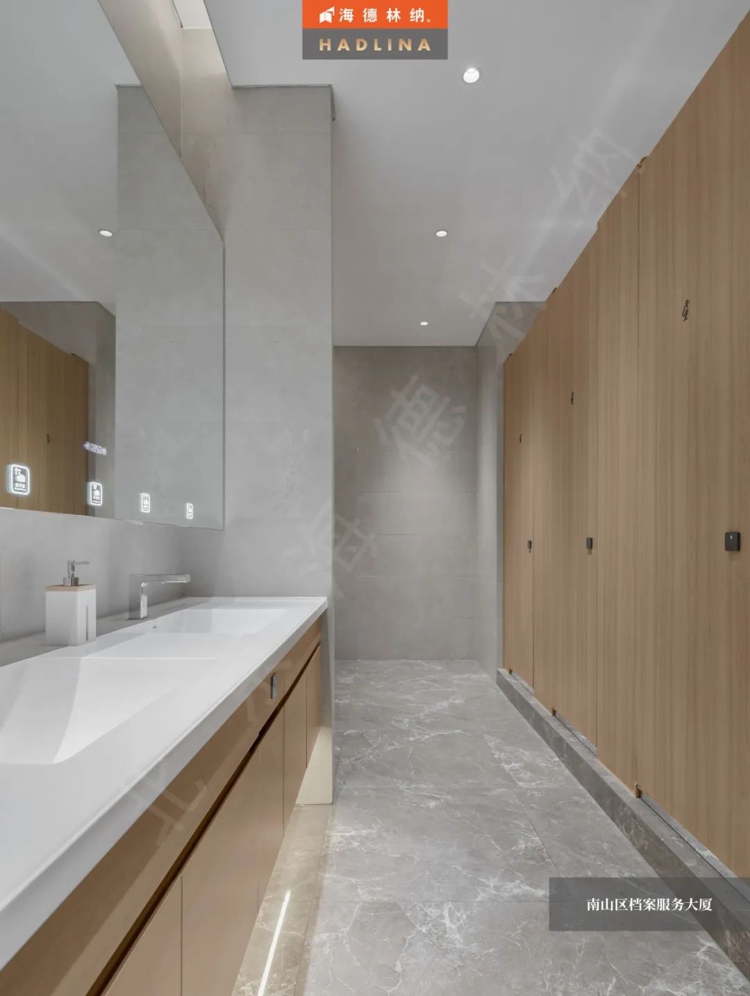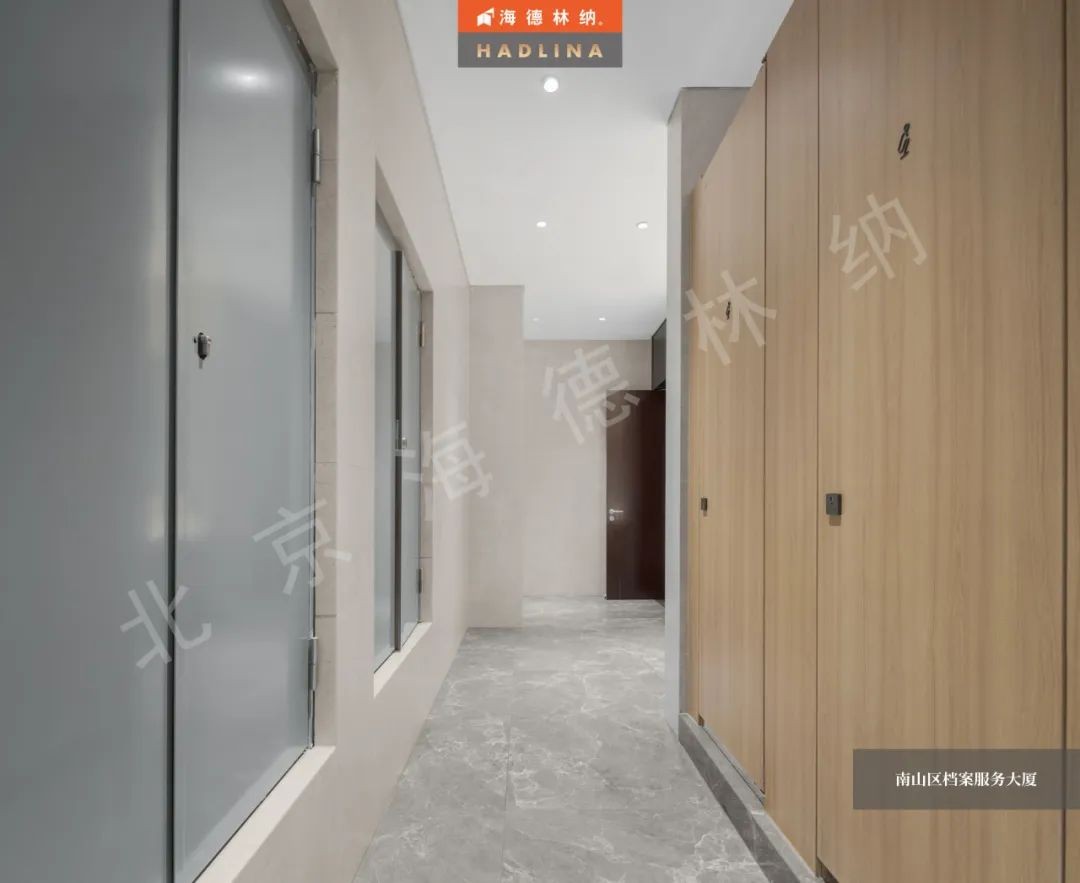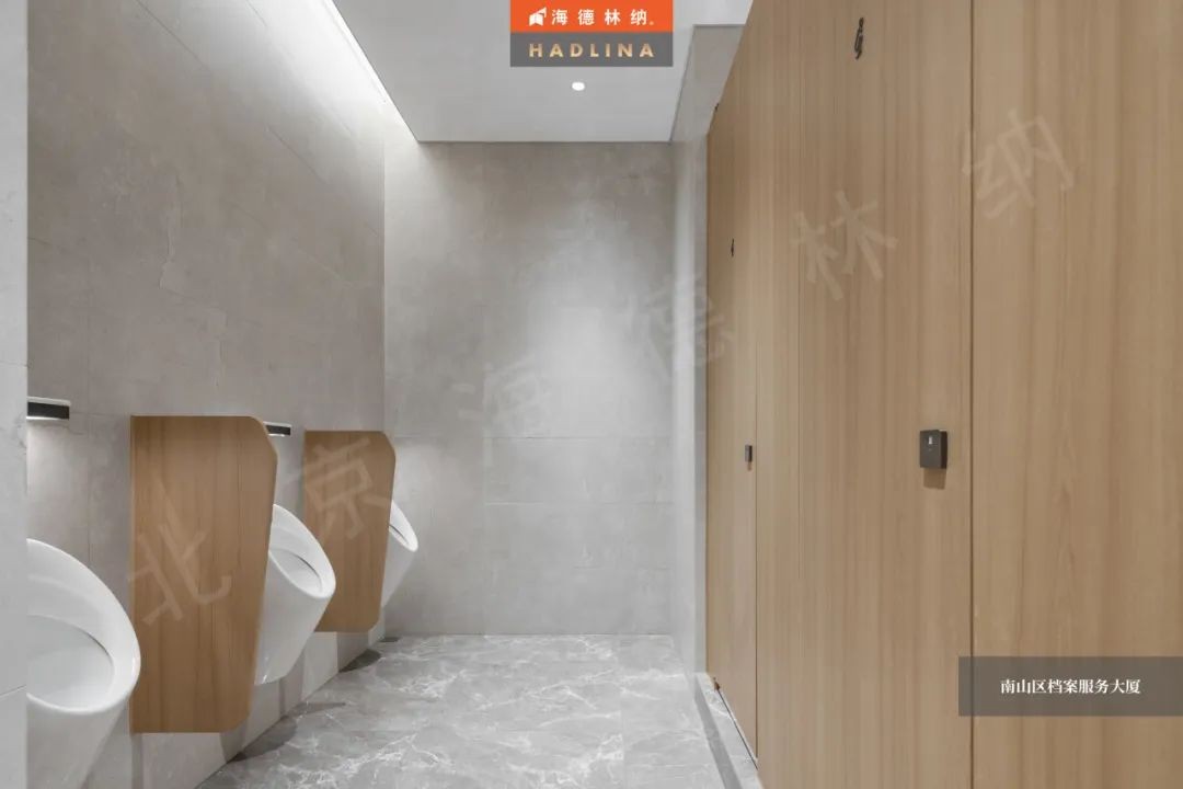 深圳檔案大廈衛生間隔斷采用原木色花紋,展現自然的魅力,恰到好處地融入空間,為整體增色不少。細膩的木紋質感,為使用者帶來溫暖與放松。在這溫暖的氛圍中,人們仿佛置身于自然之中,感受大自然的饋贈。