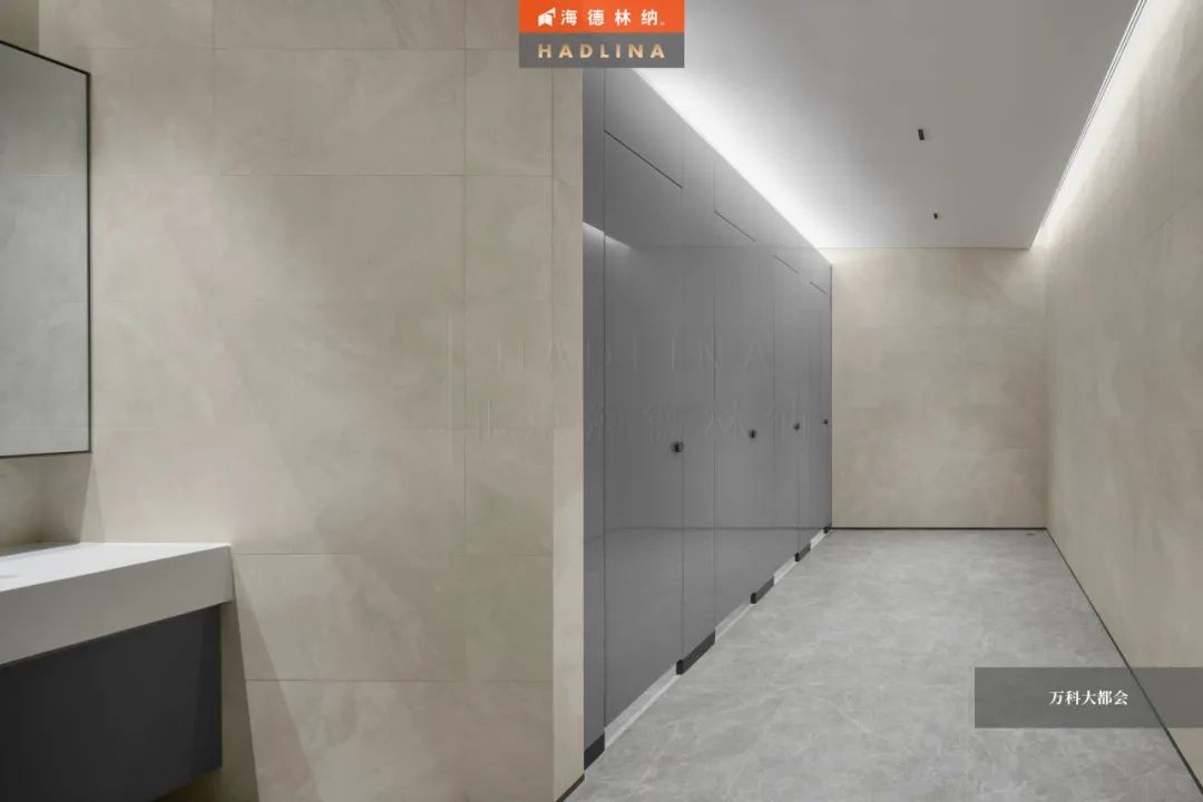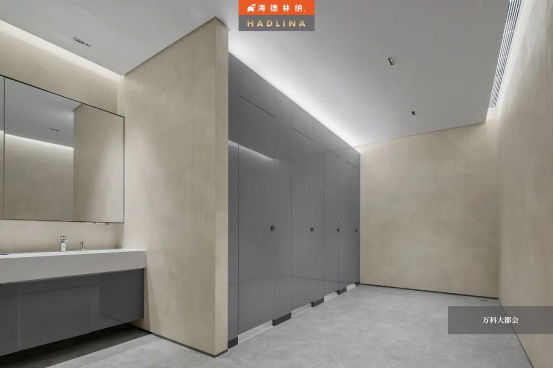 科技灰色的外觀(guān)完美融入了濟(jì)南萬(wàn)科大都會(huì)的現(xiàn)代氛圍。這種色彩不僅突顯出空間的現(xiàn)代感,還為衛(wèi)生區(qū)域注入了一股高科技的氣息。同時(shí),鋼化玻璃裝飾提升了整個(gè)區(qū)域的高雅感和時(shí)尚度,創(chuàng)造出一個(gè)令人舒適愉悅的環(huán)境。