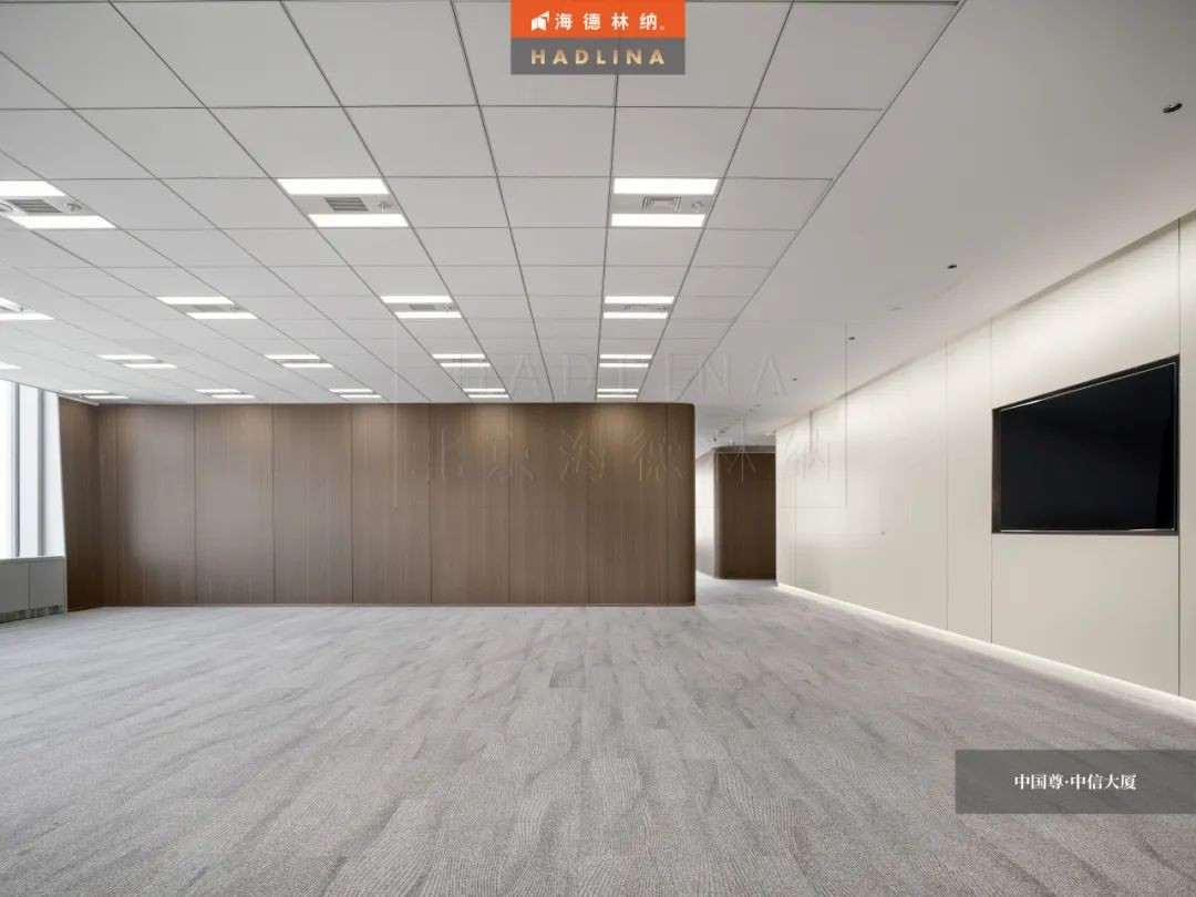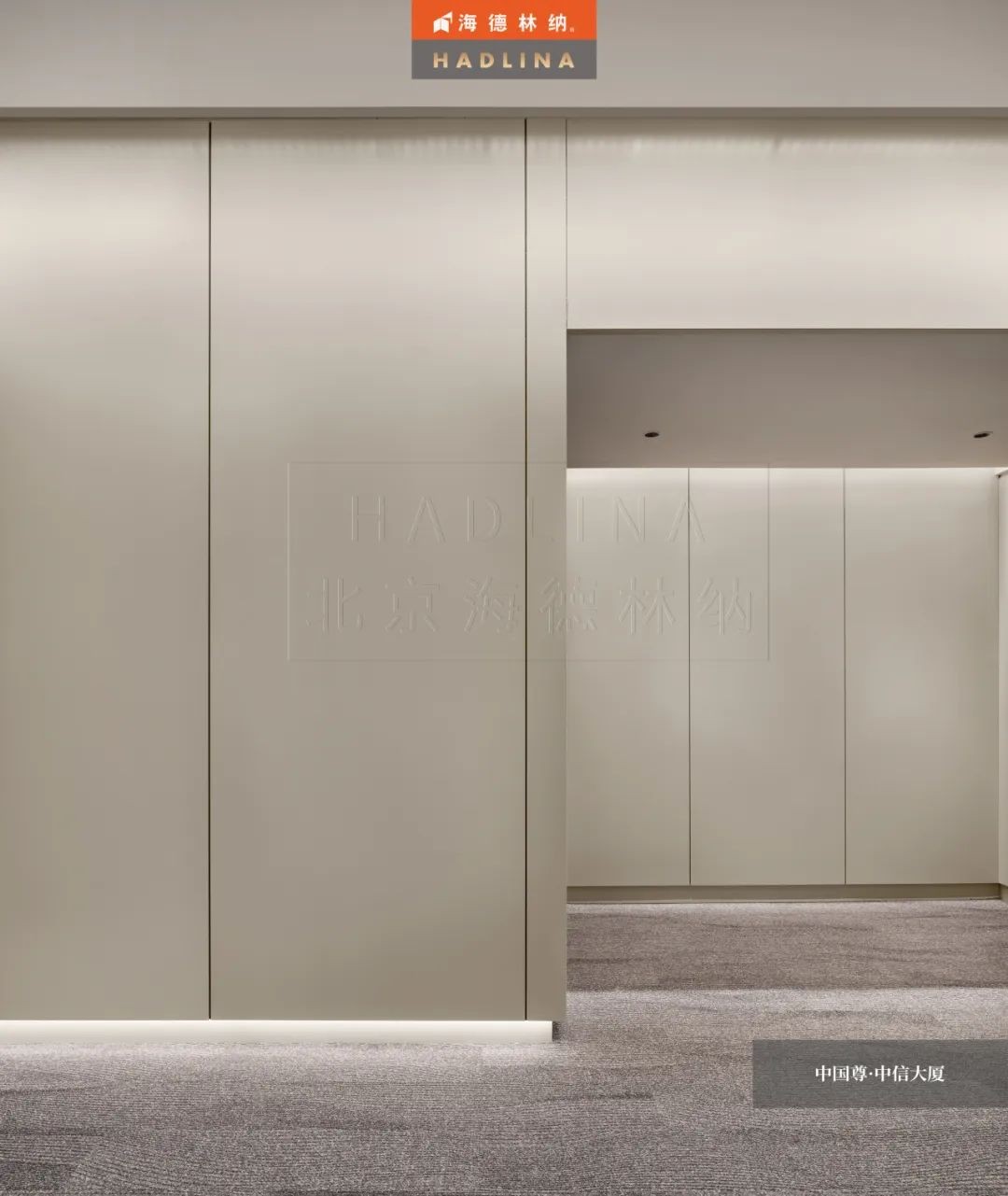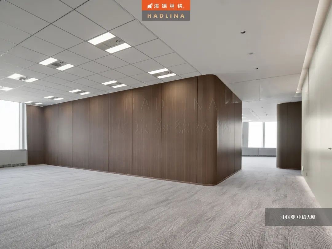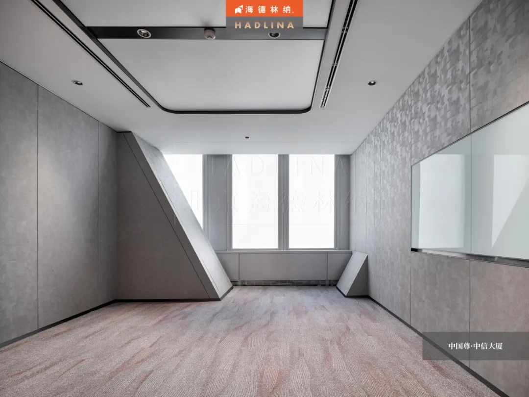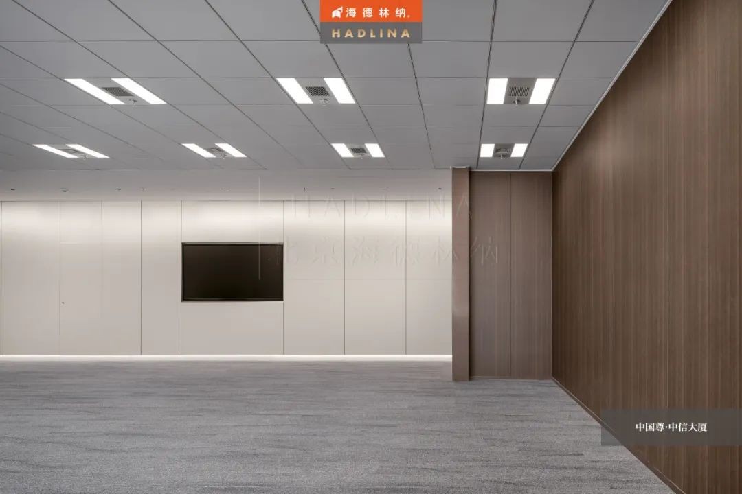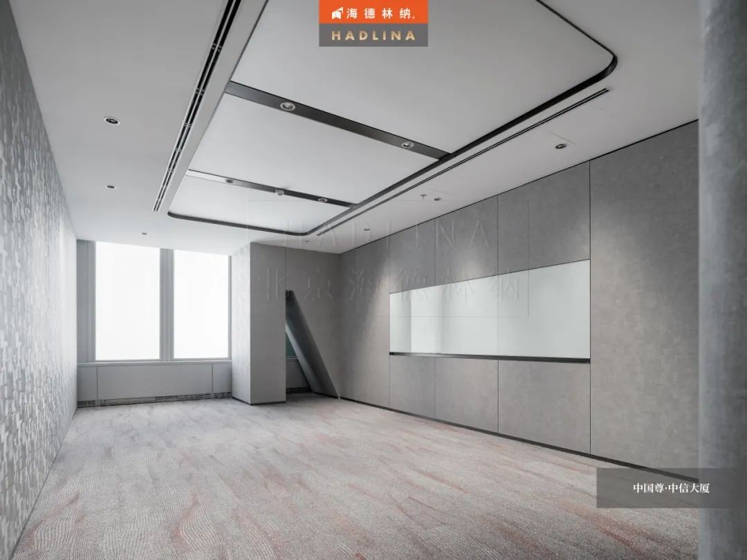 中國尊/中信大廈裝配式掛墻系統主要選用海德林納?木紋/布紋為主要顏色,將色彩與空間完美結合,給人帶來一種溫暖、自然的感受。色彩的選擇與搭配讓整個空間更加和諧統一,營造出舒適宜人的氛圍。為人們提供了愉悅的視覺享受,讓人沉浸在自然的溫暖與寧靜之中。