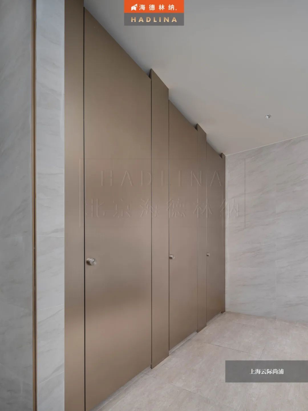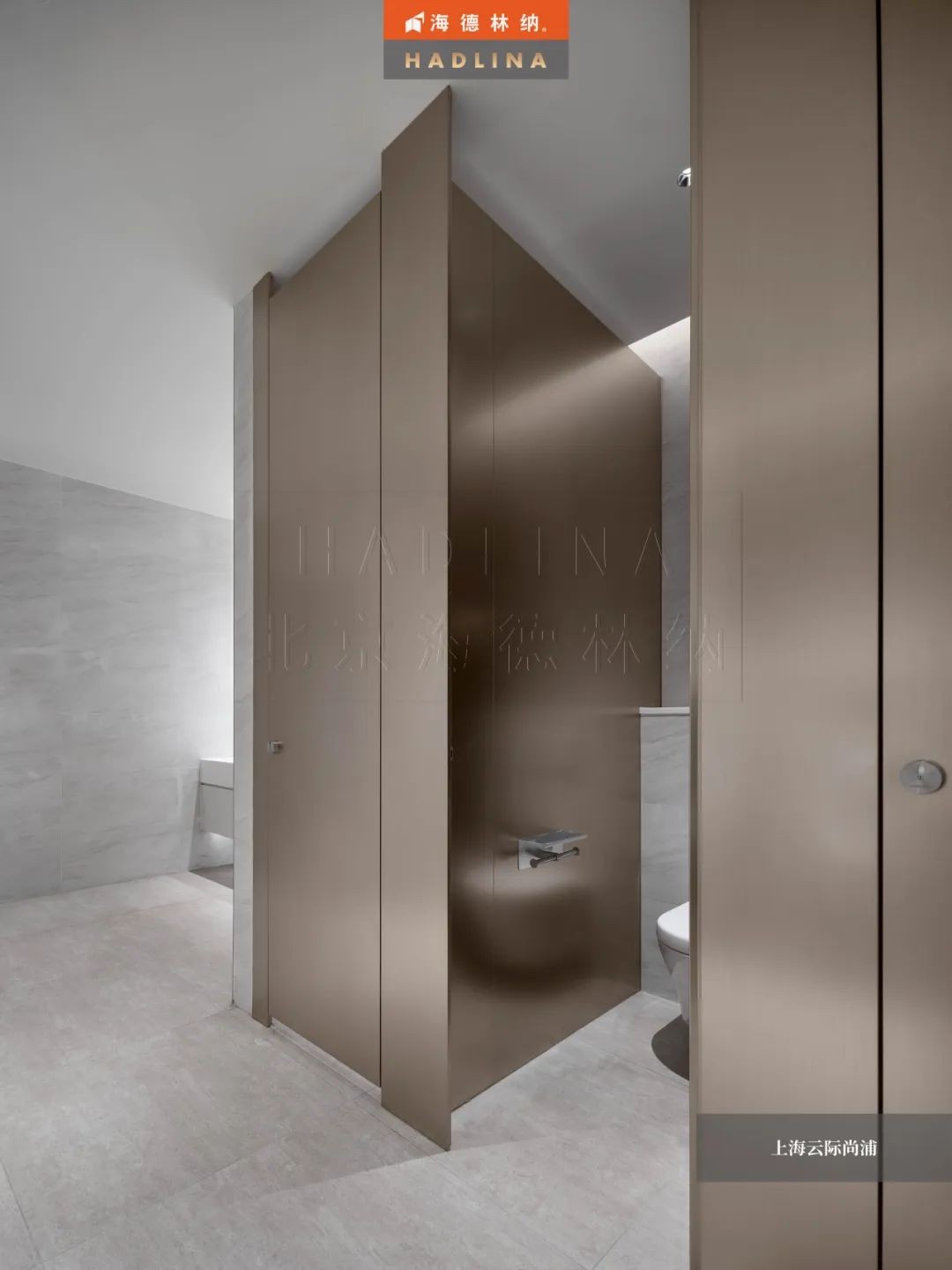 上海云際尚浦采用海德林納?HD109款式,設(shè)計簡約大方,線條流暢,彰顯現(xiàn)代感和品位。錫銅拉絲的顏色更是為其增添了一份高級質(zhì)感,使整體衛(wèi)生隔斷與周圍環(huán)境完美融合,提升了空間的美感與品質(zhì)。